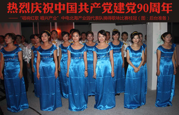 熱烈慶祝中國共產(chǎn)黨建黨90周年<br>——“唱響紅歌 唱興產(chǎn)業(yè)”中電北海產(chǎn)業(yè)園代表隊摘得歌詠比賽桂冠