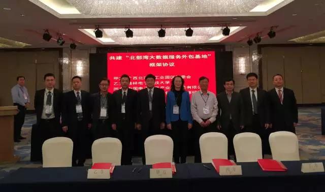 乘著北海市委務虛會的東風,2017年1月8日,在自治區(qū)工信委徐莉青副主任、北海市委常委、副市長曾子祥,桂林電子科技大學校長古天龍等領導見證下,清華大學國家服務外包人力資源研究院與桂林電子科技大學、北海工業(yè)園區(qū)管委會、中國電子北海產(chǎn)業(yè)園公司在深圳簽署合作協(xié)議,建設北部灣大數(shù)據(jù)及服務外包基地,標志著以軟件及信息服務業(yè)為主導產(chǎn)業(yè)的中國電子北部灣信息港進入新的發(fā)展階段。